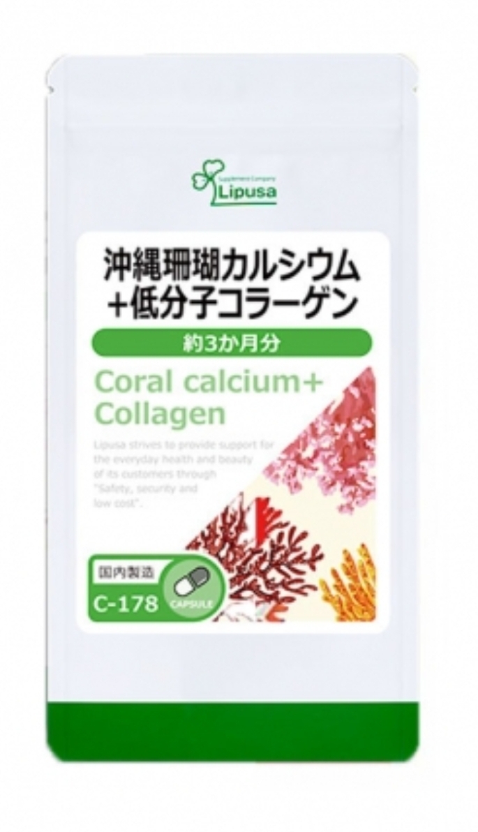 Lipusa Coral calcium + collagen – японская биологически активная добавка для поддержания здоровья организма, повышения эластичности мышц и суставов, восстановления нормальной структуры костной и хрящевой тканей организма. Содержит кальций из кораллов, растущих у берегов Японии (Окинава) и низкомолекулярный пептид коллагена(из рыбы).