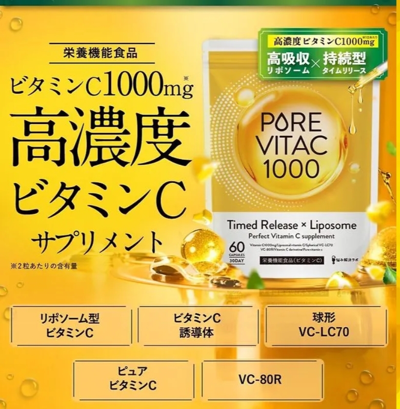 Высококонцентрированная японская добавка, в составе которой сразу пять форм витамина С: липосомальный, VC-LC70, VC-80R, стабильный производный витамин С и чистый витамин С. Такой комплекс обеспечивает длительное и равномерное поступление витамина в организм, что помогает поддерживать иммунитет, здоровье кожи и антиоксидантную защиту.